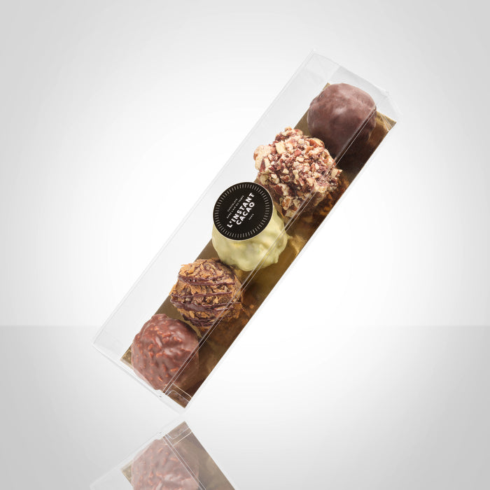 Rochers Physalis-Pécan: praliné (pécans, sucre), physalis, pécans, chocolat noir